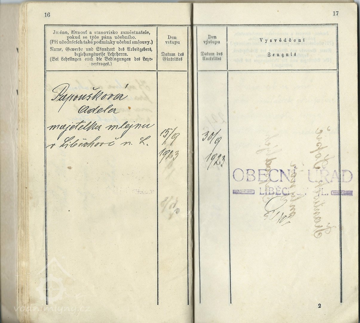 Od 1923 byla majitelkou mlýna Adéla Papoušková.