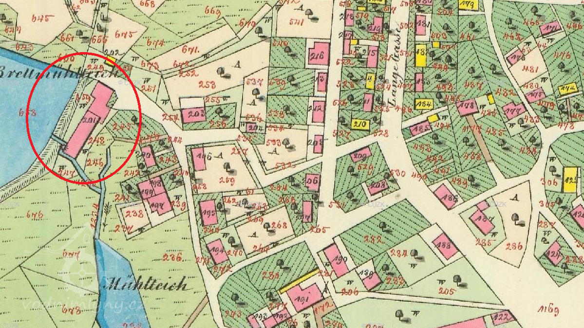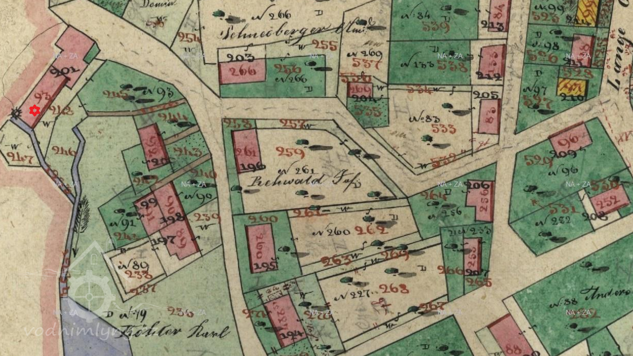 Zaniklý mlýn, na jeho místě je městská zeleň. Dosud se zachoval tzv. Pilařský rybník, který sloužil jako akumulační nádrž pro mlýn.
