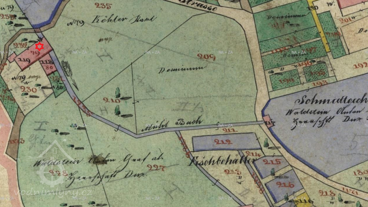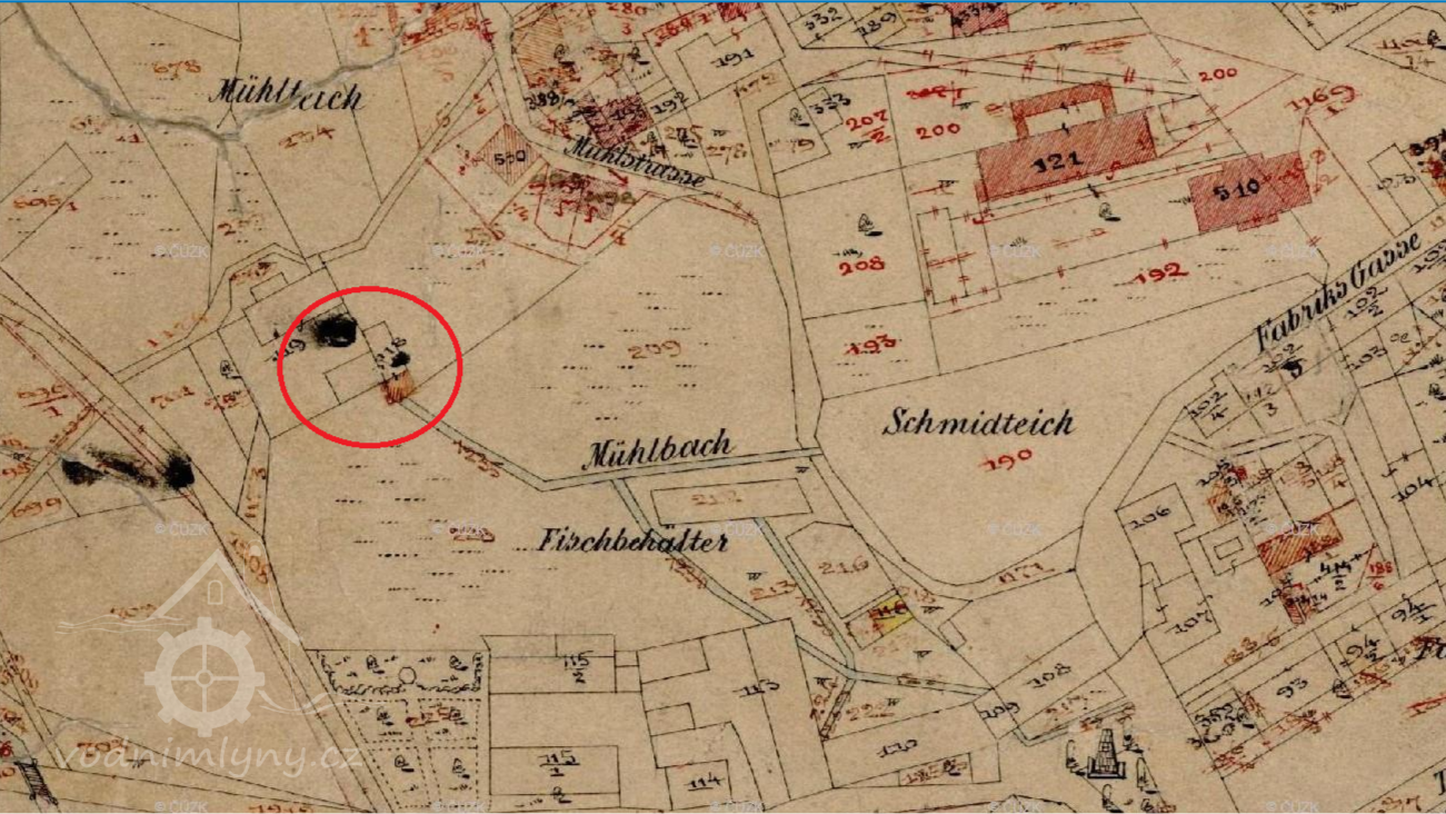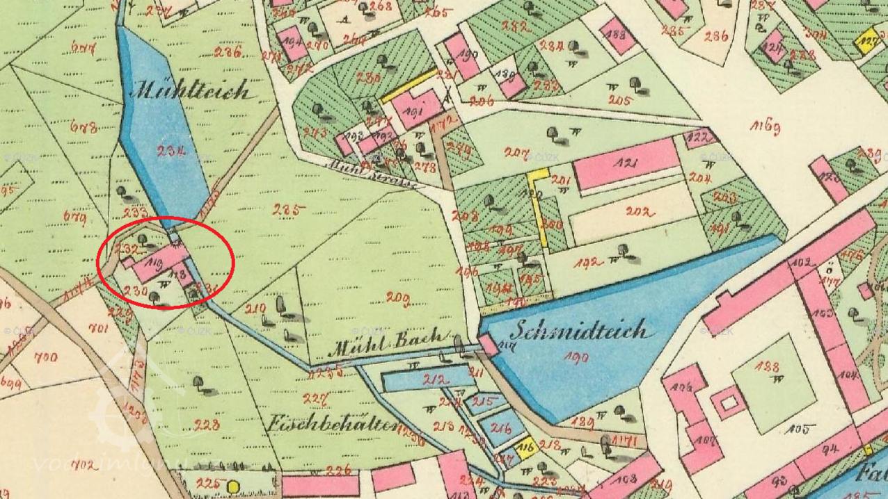 Na mapě I. vojenského mapování zobrazen jen jako objekt. Jako vodní dílo vyznačen na mapách pozemkového katastru.
