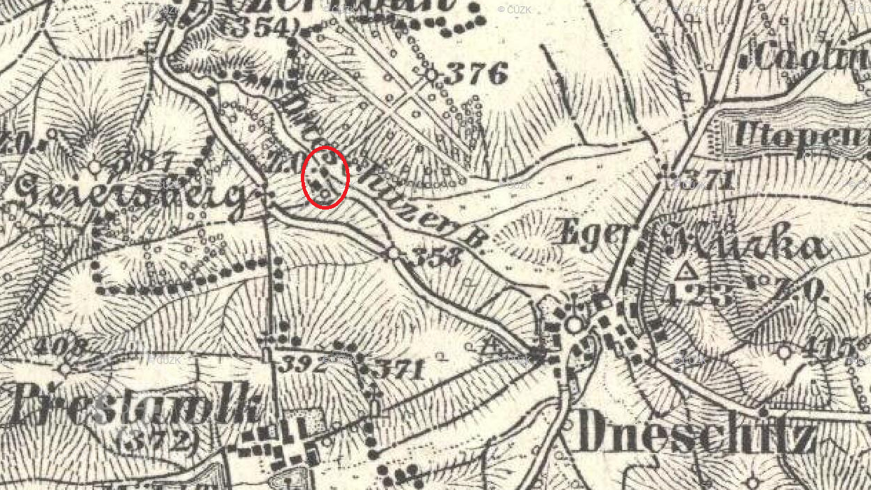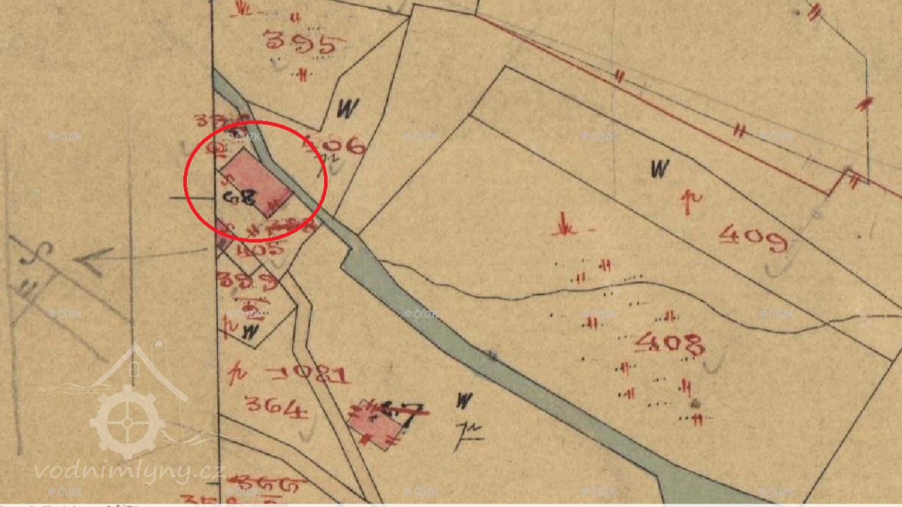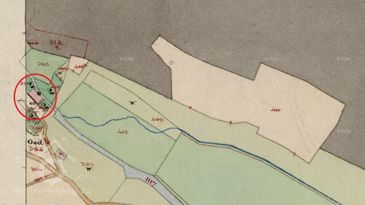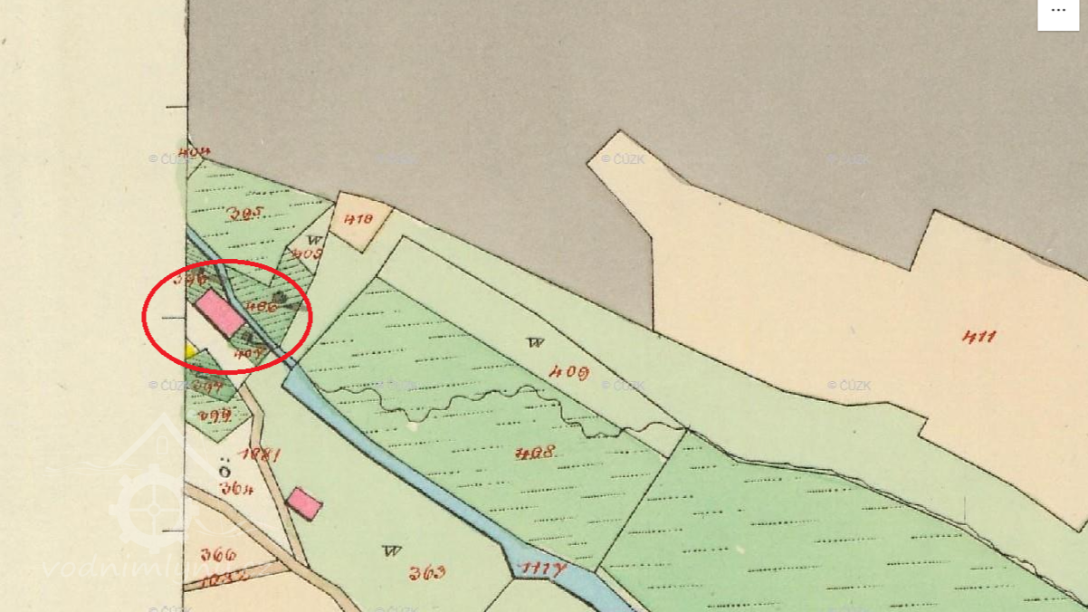 Mlýn zakreslen na mapě I. vojenského mapování.