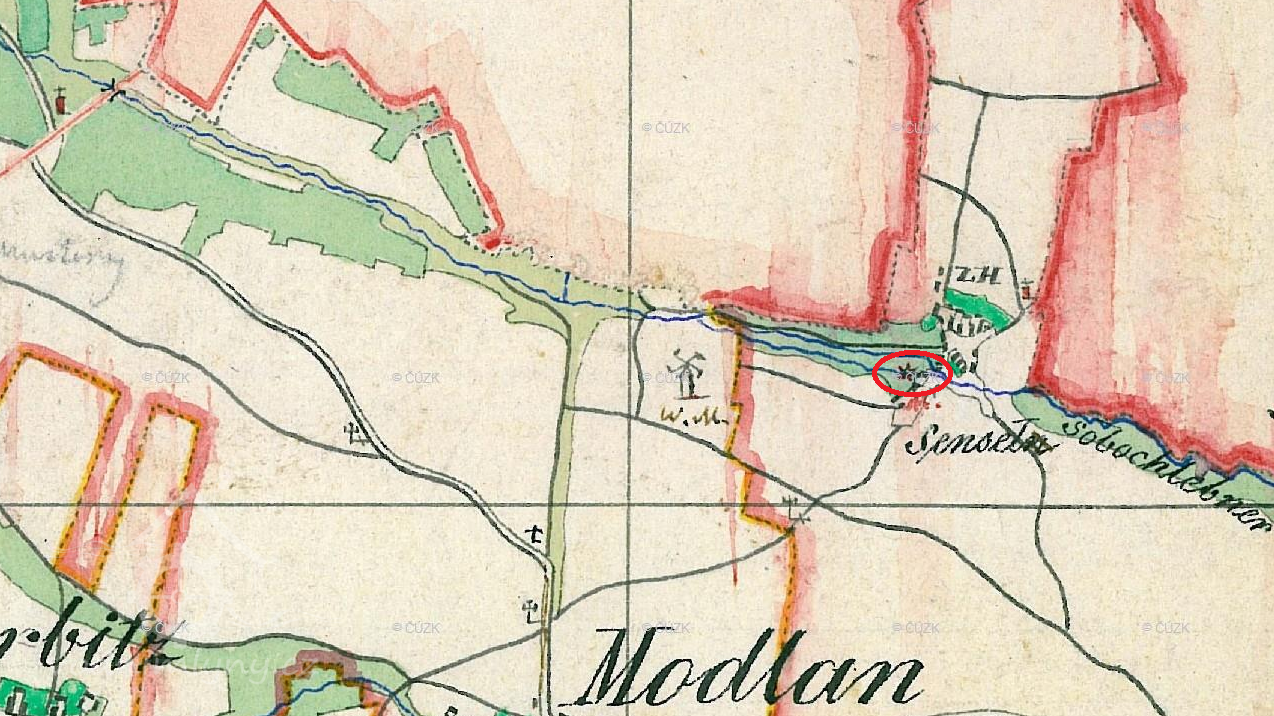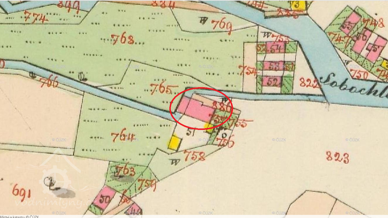Zbořený mlýn, který zanikl spolu s obcí kvůli těžbě uhlí. Místo obce nebylo vytěženo, ale obec se začala propadat kvůli hlubinným dolům a proto byla vysídlena a zbourána. Mlýn se nacházel vedle dnešního Zalužanského rybníka.