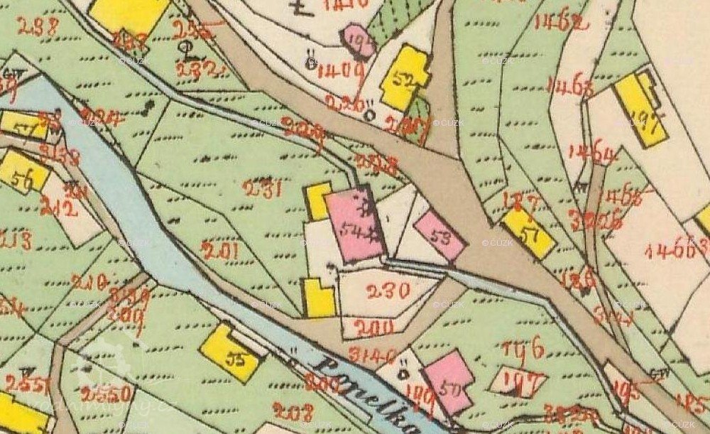1835 od J.M. syn Antonín Mašek mlýn o 2 slož. za 3200 zl. konv.m.