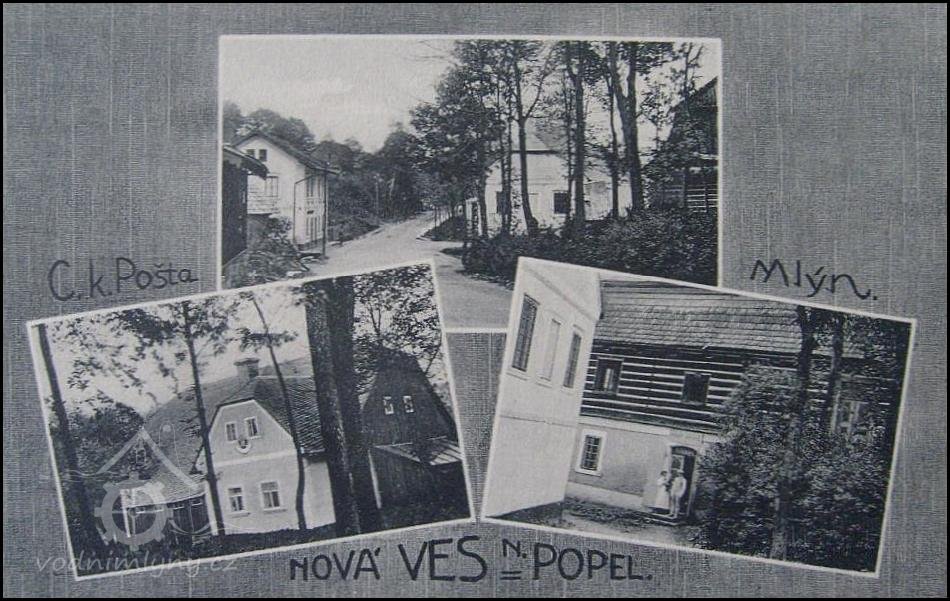 První zmínka o údolní lánové vsi zvané Nová Ves pochází z roku 1369. Předmětný mlýn je poprvé připomínán při prodeji v roce 1590. Roku 1624 Eliška Žerotínská z Valdštejna na Lomnici potvrdila Kateřině Tuhaňské ze Strašína starší privilegium z roku 1607, ve kterém je tento mlýn osvobozen od všech platů a povinností. Ale už roku 1644 koupil mlýn purkrabí Jan Kalenský "k ruce" Emilii Valdštejnské, roz. ze Žerotína. V letech 1689 - 1754 byl mlýn v držení rodu Vlčků. Krátce svůj podveský Brodecký mlýn za tento směnili Fitzové a roku 1761 se opět při mlýně vyskytuje Jiřík Vlček a při koupi se jmenuje i vybavení tohoto mlýna o jednom složení. Koncem 18. století patřil mlýn Křížkům a v letech 1799 - 1884 byl v držení rodu Mašků. Za nich už byl mlýn o dvou složeních. Před první světovou válkou byl mlýn vlivem dražby a drobení vlastnických podílů v držení více majitelů. Roku 1924 koupil mlýn za necelých 50 tisíc Kč Rudolf Novotný. V té době se u mlýna uvádí opět jen jedno složení s vodním kolem na svrchní vodu. Jeho syn vzal s sebou stroje a koupil si větší mlýn ve Slezsku. Zbylí členové rodiny zůstali zde a tkalcovali na 4 mechanických stavech. Přestože byl oficiálním Seznamu vodních děl tento objekt veden jako mlýn, již koncem 20. let se o něm hovořilo pouze jako o bývalém mlýně. Po roce 1948 již mlýn nebyl využíván a bez elementární údržby postupně chátral. Přes ne zcela havarijní stav bylo na počátku 90. let doslova strženo roubené patro i se střechou do vlastního interiéru objektu.