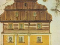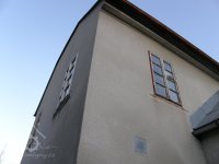 J Průčelí - od V 2 oken. osy světnic, za nimi dveře - v přízemí s hladkým ostěním; v patře vstup na zří­cenou pavláčku. Dále v přízemí ležaté okénko s mříží, za ním otisk přístavku kůlny. V patře za dveřmi 2 štěrbin. okénka.
