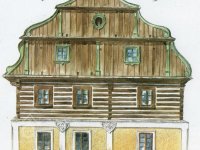 Průčelí : Přízemí na pískovc. soklu členěno prostými bílými lesenami /krajní od nároží mírně odsazeny/, plocha stěn hrubá žlutá omítka, ostění oken s profil. pískovc. parametrem a omítkovou šambránou s lištou. Okna dělena na 8 dílů. Patro roubené s bílou vymazávkou spár, okna s dřev. parap. deskou a širokou šambránou.