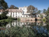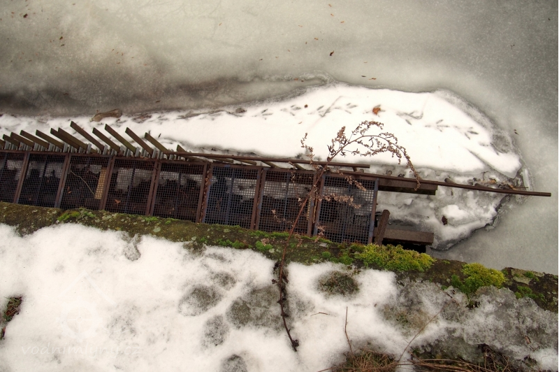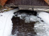 Voda je přiváděna dlouhým náhonem, který se před mlýnem dělí na 2 ramena.