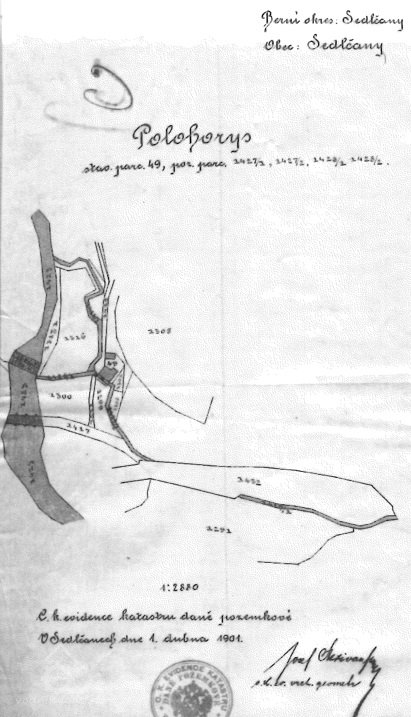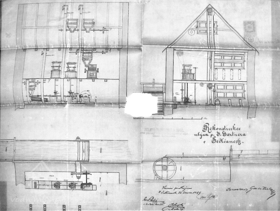 Na kolaudační řízení se čekalo do 15. března 1900, kdy dala Aloisie plnou moc svému manželovi Jaroslavu Gärtnerovi.614 21. května 1900 se ke kolaudačnímu řízení vyjádřilo okresní hejtmanství v Sedlčanech. Doplnilo, že 5. února 1900 si stěžovala Josefa Pejšová, majitelka hořejšího mlýna s číslem popisným 4 ve Lhotce, na nynější stav mlýna s číslem popisným 102 v Sedlčanech. Spodní voda jejího mlýna totiž odtékala hůře než v minulosti. Obě strany se dohodly na stavbě splávku, kterým bude spotřebovaná voda rychleji z hořejšího mlýna stranou jalovou vypuštěna. Tuto vodu dosud dolejší mlýn nestačil vypotřebovat. Tak bude odpadní voda z hořejšího mlýna lépe odtékat.615 Dále se majitelky domluvily na čištění mlýnských stok: „Kdykoliv majitelka mlýna čp. 4 ve Lhotce strouhu mlýnskou nad mlýnem svým čistiti bude, uvědomí o tom tři dni před tím majitelku mlýna čp. 102 v Sedlčanech aby této možnost poskytnuta byla strouhu svého mlýna současně vyklizovati. V případě, že ten který rok majitelka horního mlýna čp. 4 ve Lhotce, strouhu svou vůbec čistiti nebude, zavazuje se k cíli tomu, aby majitelka mlýna dolejšího čp. 102 v Sedlčanech strouhu svou řádně vyčistiti mohla, mlýn hořejší aspoň na 1 den bez nároku na nějakou náhradu zastaviti a vodu hned nad hořejší mlýnem na jalovo pustiti.“