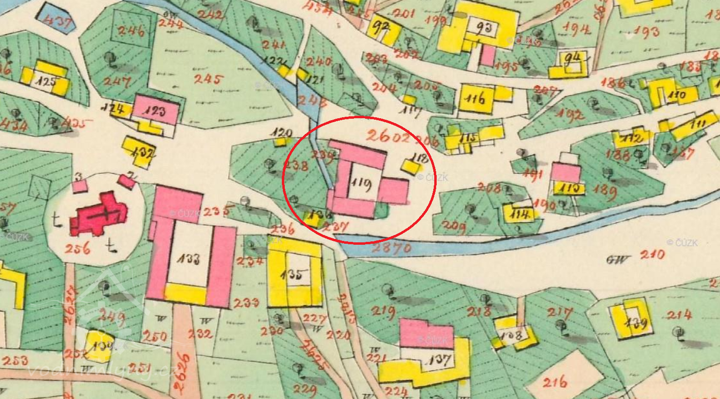Popis1930: 1 turbína Francis, hltnost 0,065 m3/s, spád 7,5 m, výkon 4,8 HP