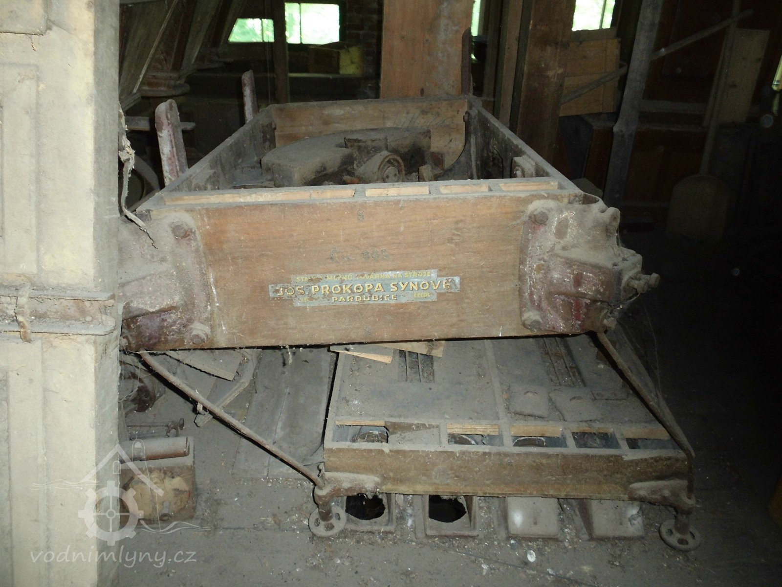 k čištění obilí aspiratér s koukolníkem a periodická loupačka, k mletí tři válcové stolice, k vysévání jeden hranolový a jeden rovinný vysévač, který je rozebraný, ale v podstatě úplný, rozebraná je i pytlovací lávka pod rovinným vysévačem, ke třídění a čištění krupice reforma se sacím filtrem a ke šrotování kamenné složení. Jedná se tedy o složení, v kterém nechybí žádný z nezbytných strojů ke zpracování obilí na mouku a krupici.