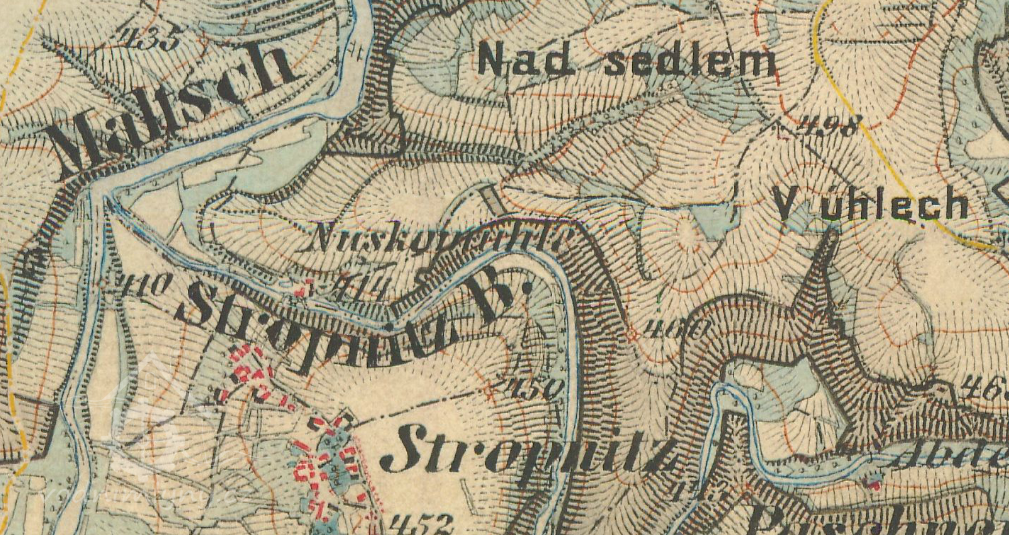 Mlýn, ležící na pomezí obcí Střížov a Dolní Stropnice u Římova na Českobudějovicku. V roce 1930 v majetku mlynáře Frant. Mareše, opatřen dvěma koly na spodní vodu.