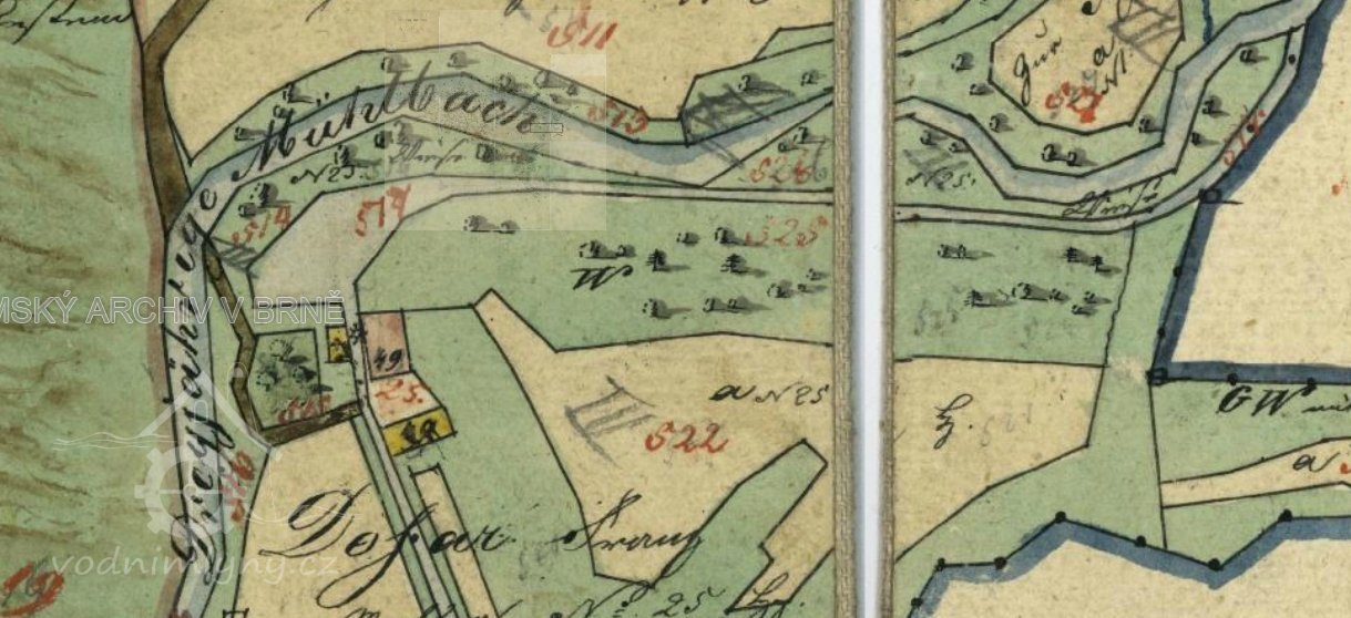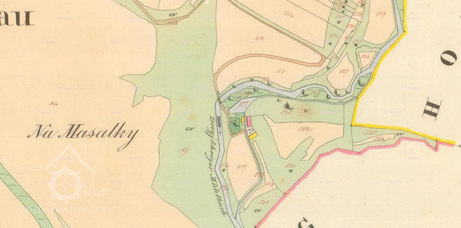 PopisV r.1930 zde bylo 1 kolo na svrchní vodu, průtok 0,103 m3/s, spád 3,6 m, výkon 3,2 k.