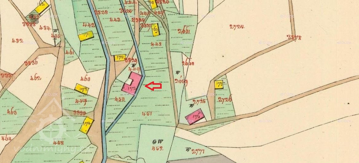 Popis1930: 1 kolo na svrchní vodu, hltnost 0.096 m3/s, spád 5,05 m, výkon 4,2 HP