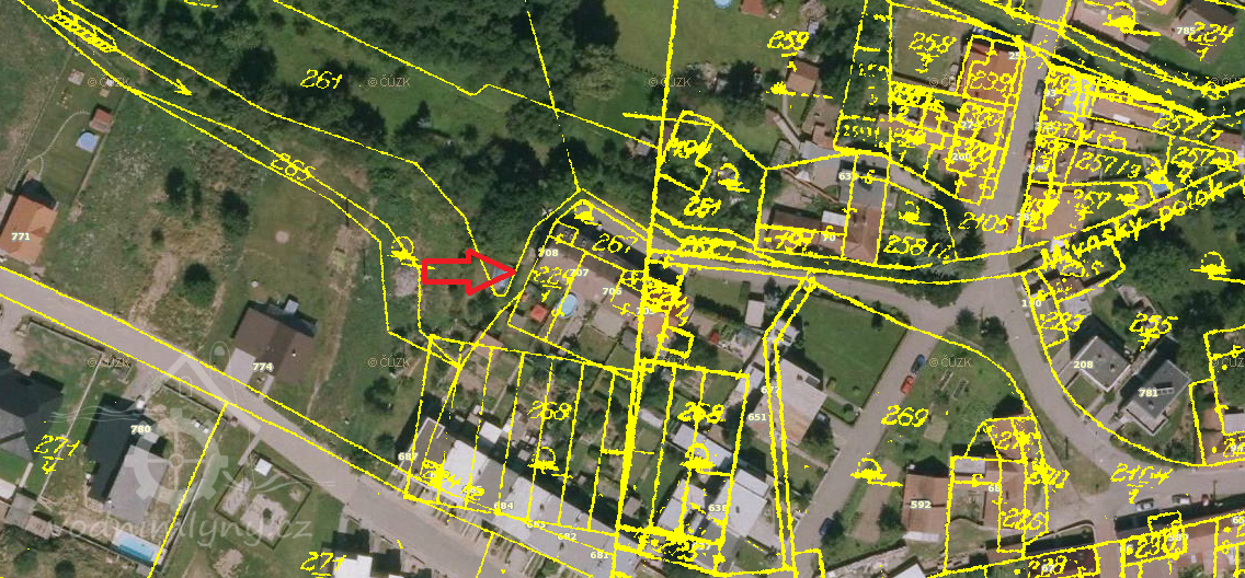 Mlýnský náhon se dá vystopovat pomocí katastrální mapy. Mlýn byl poháněn kolem.