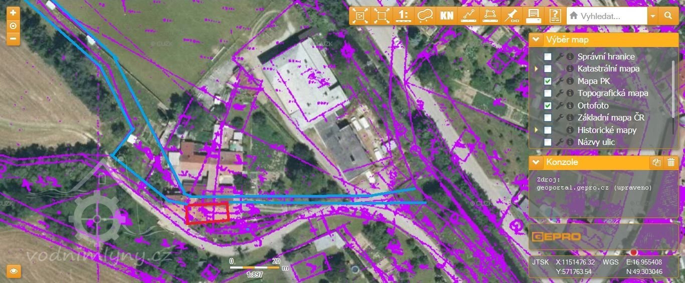 Náhon se dá vystopovat podle archivních map www.cuzk.cz