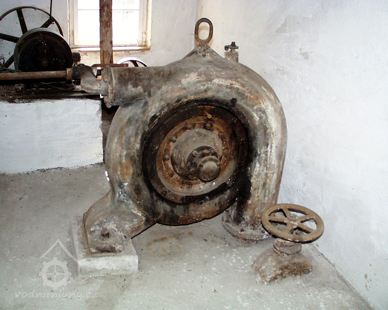 PopisV roce 1926 obě vodní kola nahradila Francisova turbína s horizontální hřídelí o výkonu 5 HP (provedla firma Josefa Prokopa synové).