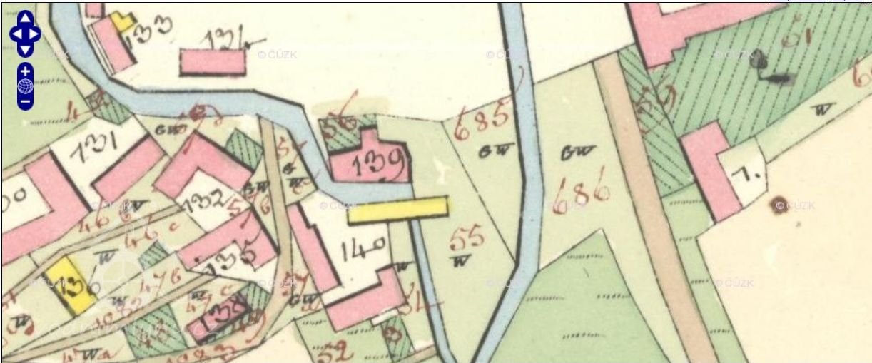 Popis1930: 1 kolo na svrchní vodu, hltnost 0,285 m3/s, spád 3,35 m, výkon 8,25 HP