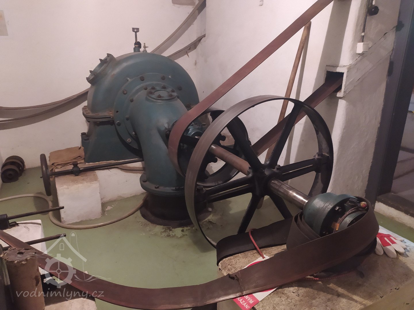 turbína, 2010, © mlyndrevicek.cz, (Prvky na obrázku: Turbína, transmise, řemenice, převody)