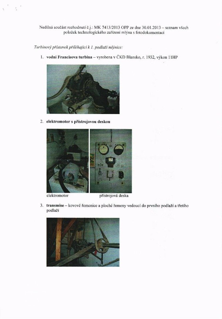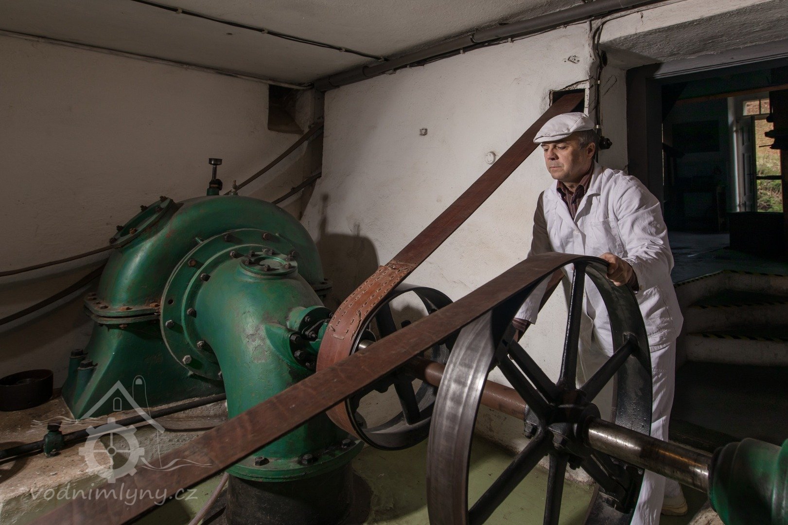 Zařízení mlýna, 01 2013, © Ministerstvo kultury, (Prvky na obrázku: Turbína, Pomocný motor, transmise, řemenice, převody)