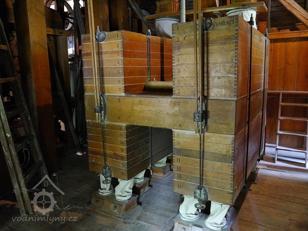 Pytlovací lávka a mlecí stolice, 11 2023, © mlýn Dřevíček, (Prvky na obrázku: válcová stolice, pytlovací lávka)