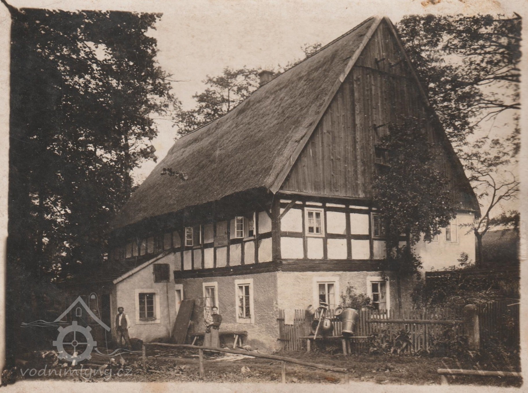 Nejstarší fotografie mlýna, ještě s původní doškovou střechou, Bez datace, cca počátek 20. stol., © Neznámý