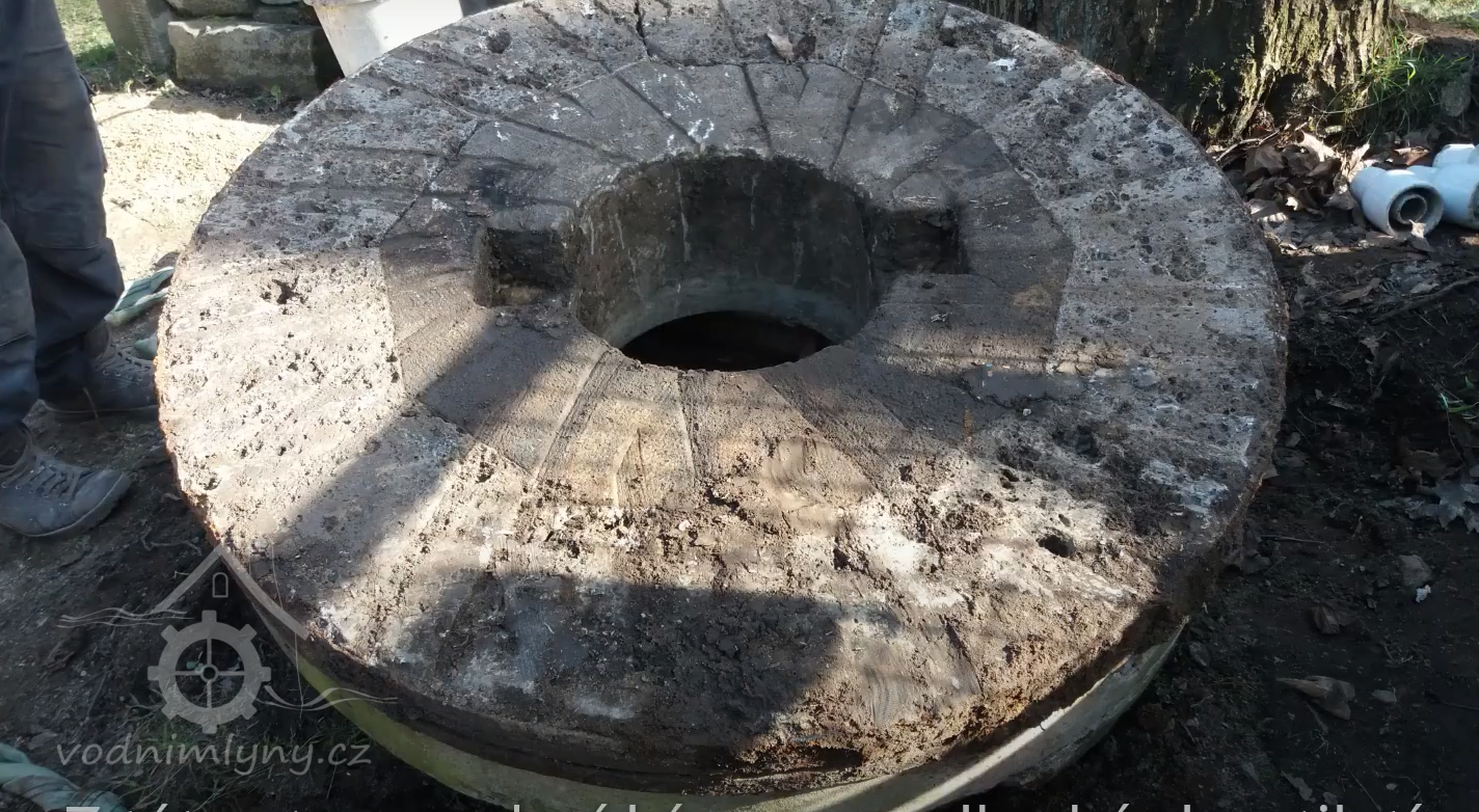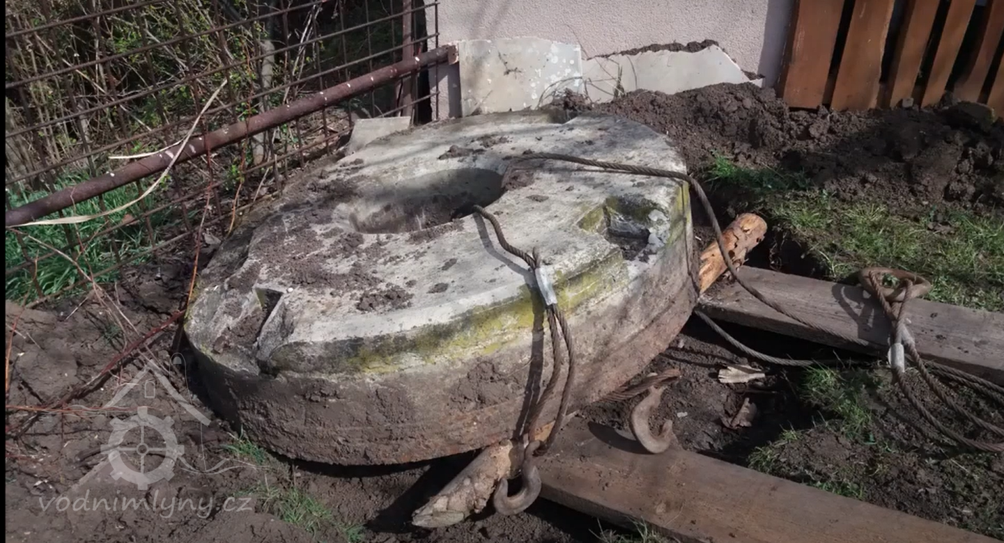 Mlecí kámen přestěhovaný sem ze mlýna ve Stadicích, 04 2021, © youtube.com, (Prvky na obrázku: mlecí kámen)