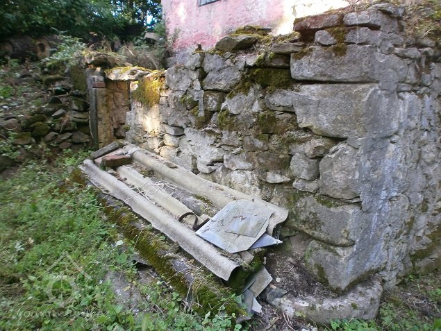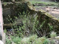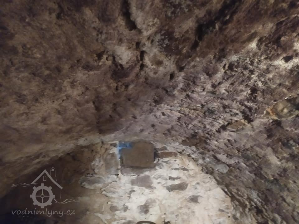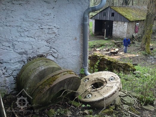 Pohled na západní stranu mlýna, lednice, zbytky původní hřídele, mlecí kameny., 12.6.2022, © Tomáš Efler, (Prvky na obrázku: lednice)