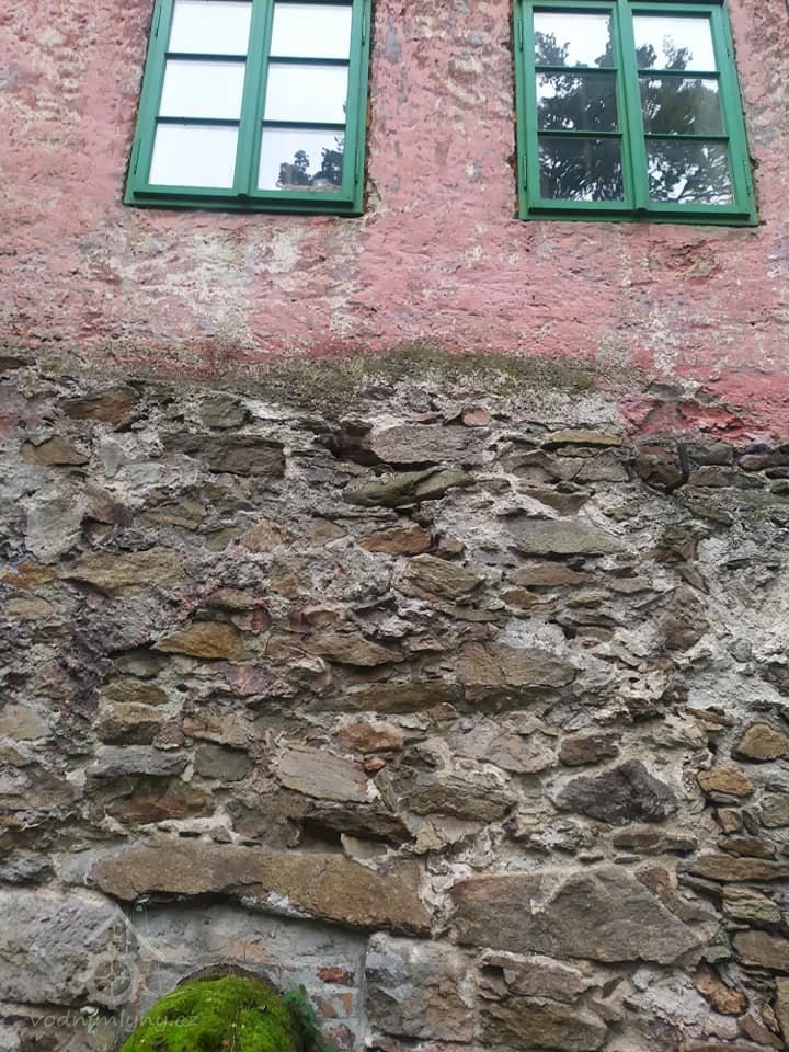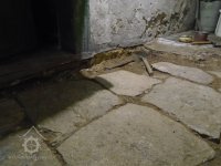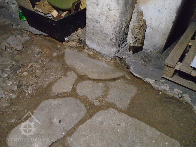 Původní kamenná podlaha byla cca o 15 cm níže. Součást původních mnohem starších základů, na nichž byl mlýn v roce 1680 postaven., 6. 11. 2017, © Renata Šoltová, (Prvky na obrázku: kamenické prvky předbělohorské)