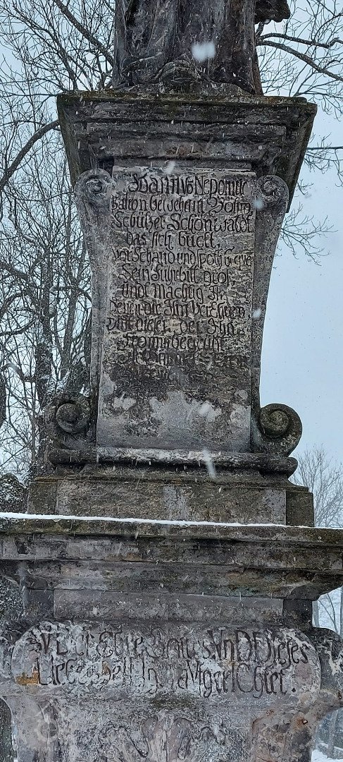Detail nápisu na podstavci sochy, 02 2022, © Jan Rýznar, (Prvky na obrázku: epigrafické památky (nápisy, datování aj.))