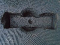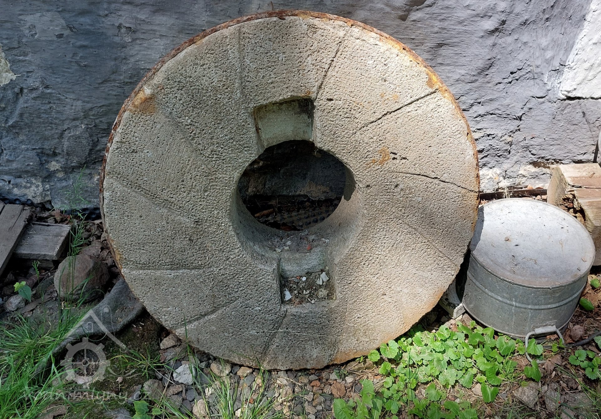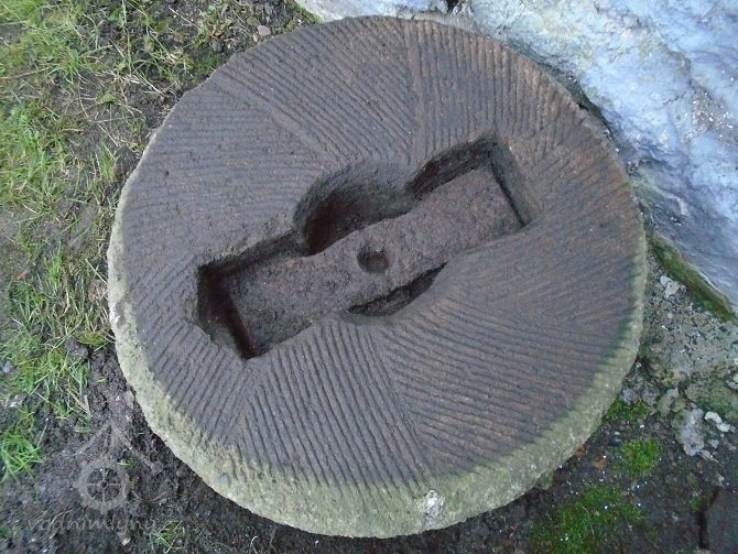 Horní otočný mlecí kámen vybavený zapuštěnou dvouramennou kypřicí, 15.08.2017, © Renata Šoltová, (Prvky na obrázku: mlecí kámen)