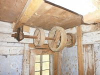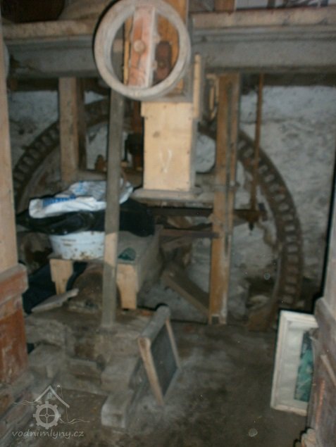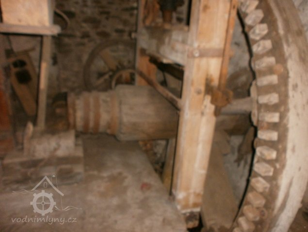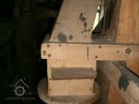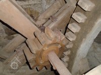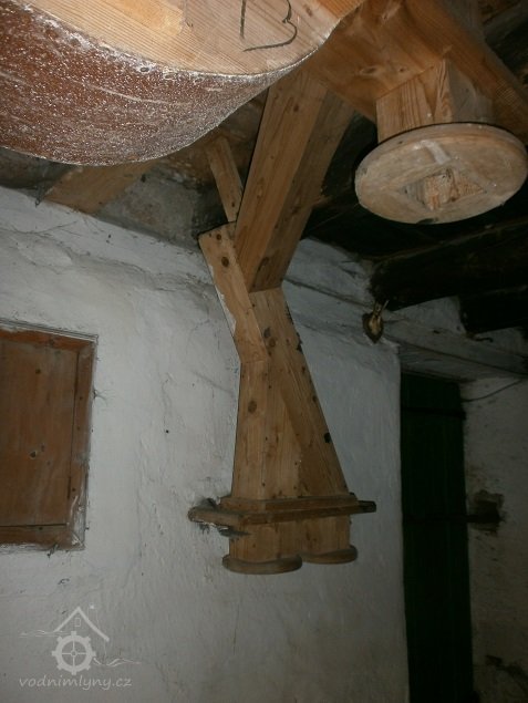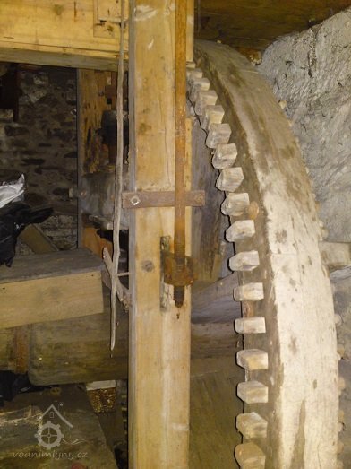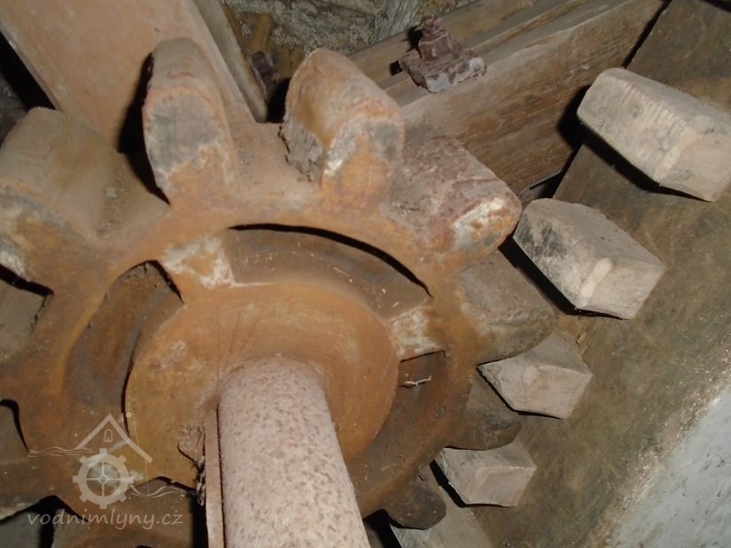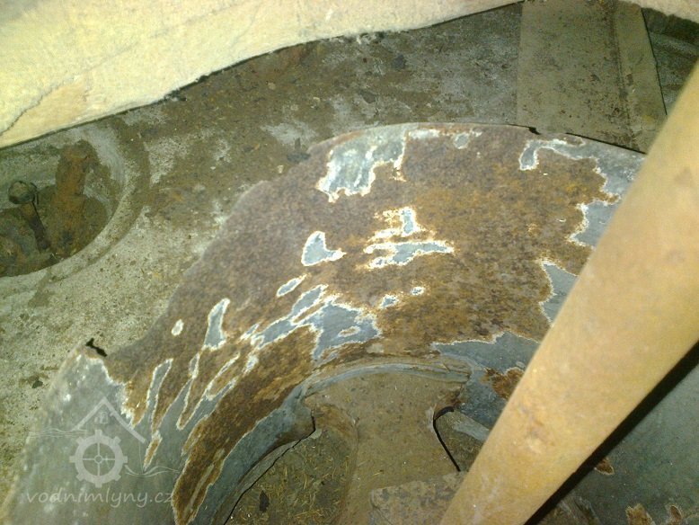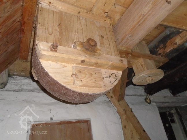 Paleční kolo na hřídeli, část mlýnice, 30. 10. 2016, © Renata Šoltová, (Prvky na obrázku: profil zhlaví mlýnské hranice)
