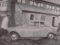 Před mlýnem s novým autem, 1970, © autor neznámý