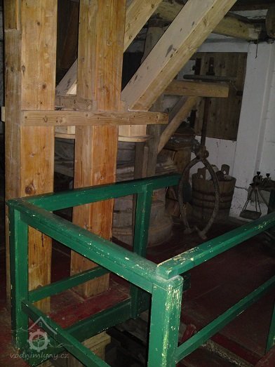Část mlýnice v patře, zábradlí kolem schodiště, 8. 8. 2015, © Renata Šoltová