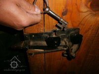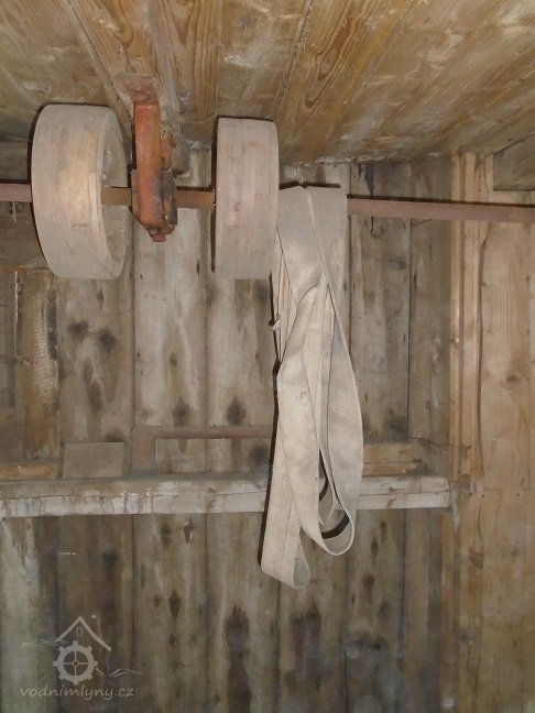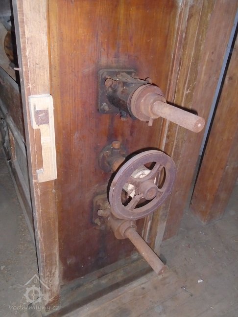 Klika na ovládání přítoku vody na vantroky, 15. 9. 2016, © Renata Šoltová, (Prvky na obrázku: transmise, řemenice, převody)