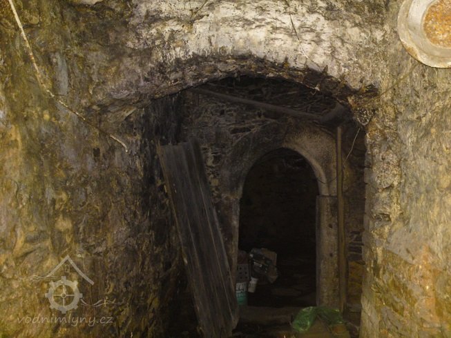 Vstup do kamenného sklepa, jeden z nejstarších prvků mlýna, 20.07.2017, © Renata Šoltová, (Prvky na obrázku: kamenické prvky barokní a mladší)