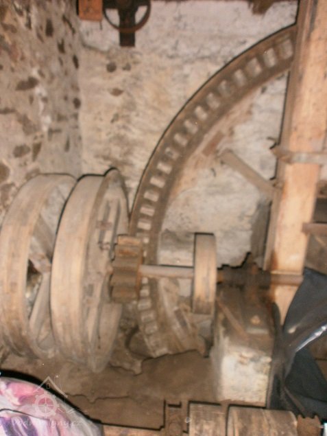 paleční kolo, 2016, © Renata Šoltová, (Prvky na obrázku: transmise, řemenice, převody - paleční kola, pastorky a cévníky (řemeslný výrobek))