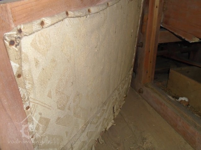 Plátno bylo přichyceno připínáčky, odhalil se nám prostor pod sítem, 9. 4. 2017, © Renata Šoltová, (Prvky na obrázku: vysévač hranolový)