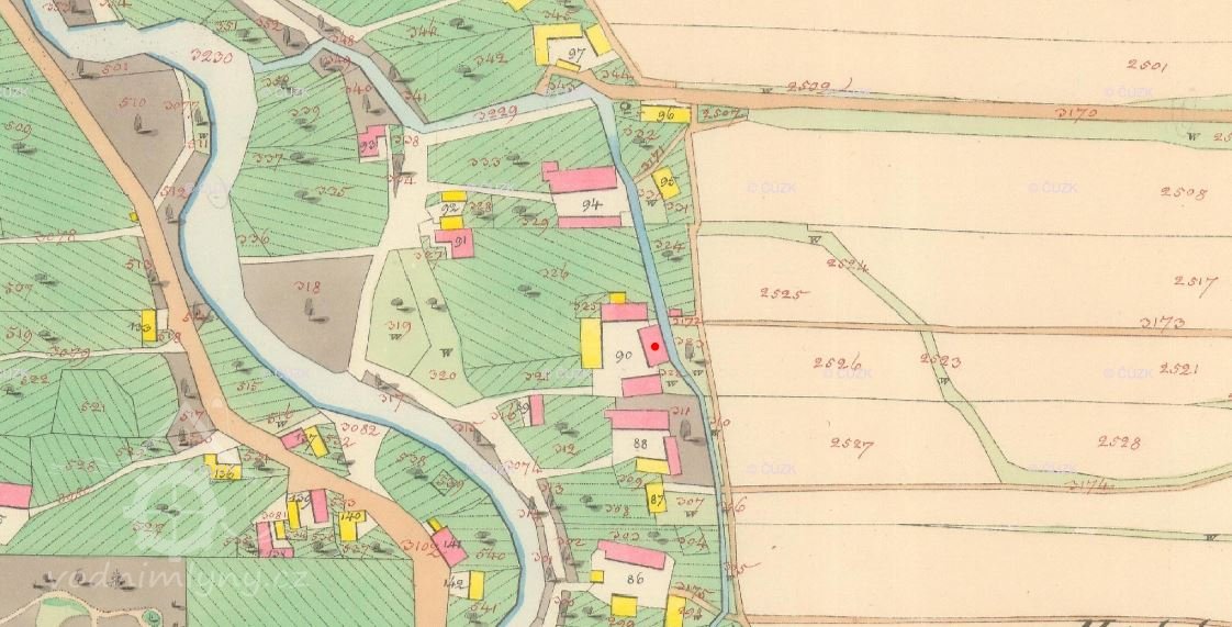 Mlýn se nacházel na místě dnešního pozemku, který patří rodinnému domu čp. 452.