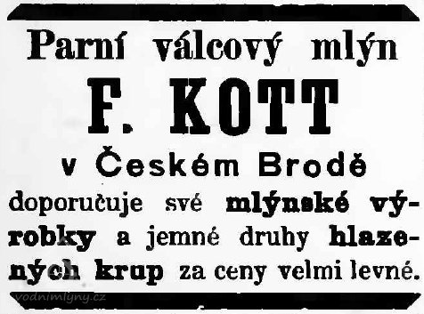 srpen 1883 zakoupil František Kott (nar. 1845), který již měl praxi jakou vedoucí parního mlýna pí. Termové v Brandýse nad Labem a se svou manželkou založil pekařství a krupařství ve Kbelu.