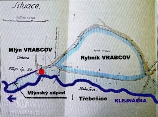 V 17. století byl u mlýna vybudován na umělém přívodním kanálu z Klejnárky rybník Vrabcov, který sloužil jako akumulační nádrž pro mlýn.