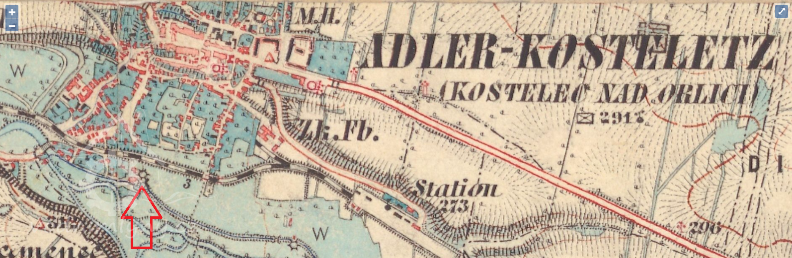 1 km jižně od kostela sv. Jiří v Kostelci nad Orlicí