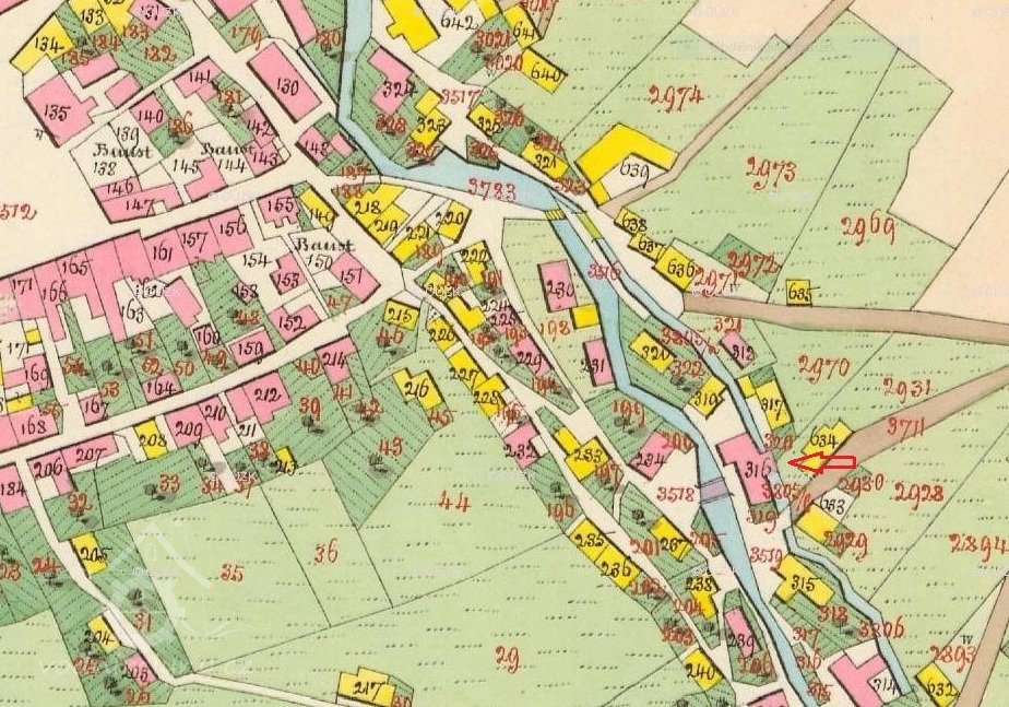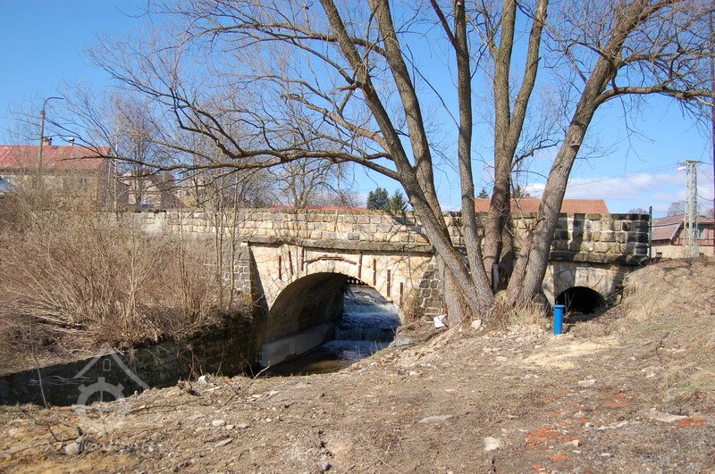 Cejch osazen 1860 na levém břehu potoka u domu čp. 31, novými značkami na zdivu levého břehu náhonu osazen 1890 a 1925.