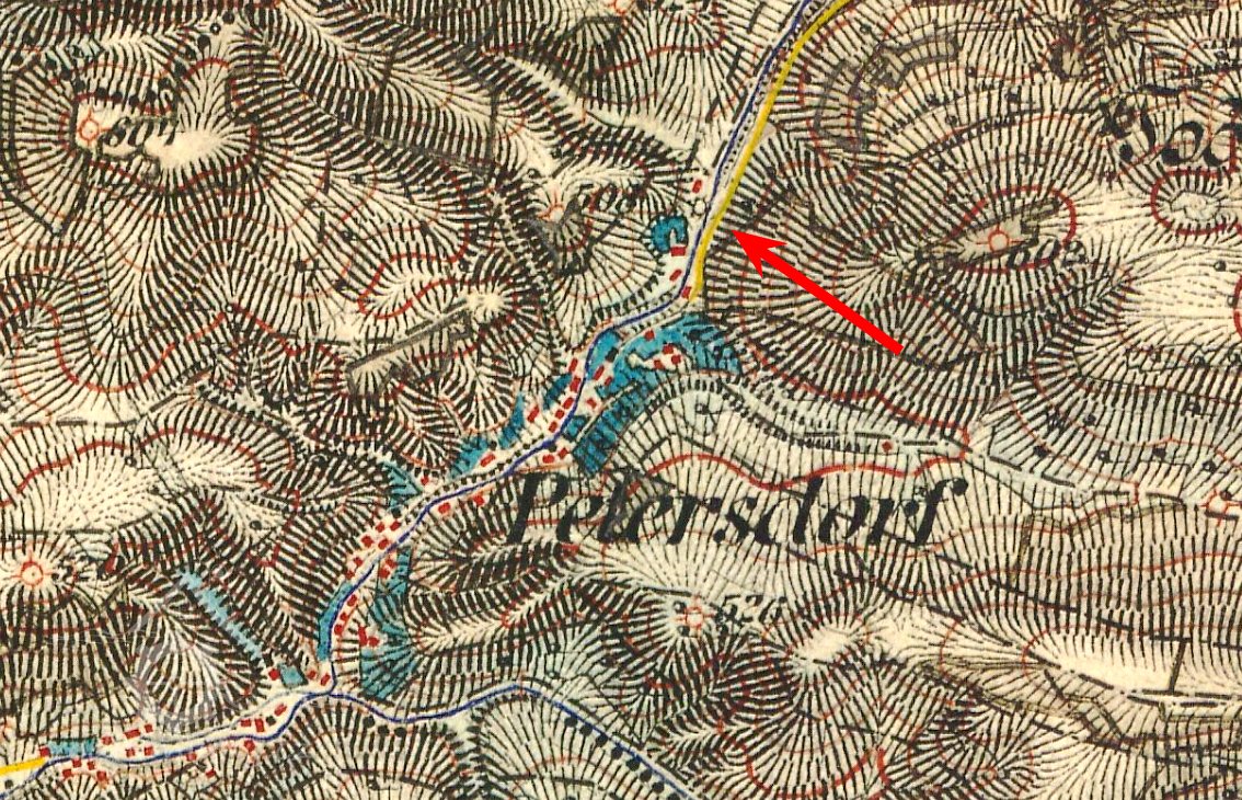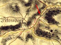 Zaniklý mlýn se nacházel v dnes již zaniklé obci Petrov (Petersdorf) na území Vojenského újezdu Hradiště.