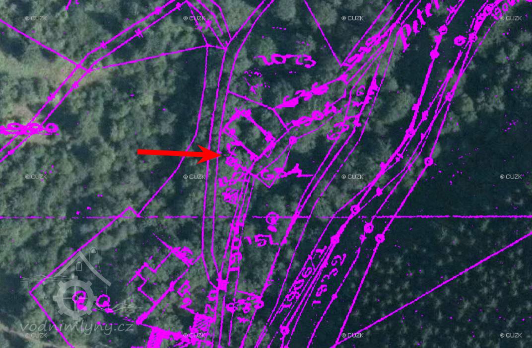 Mlýn se nacházel v severovýchodní části obce u Petrovského potoka, asi 950 m SV od kaple.