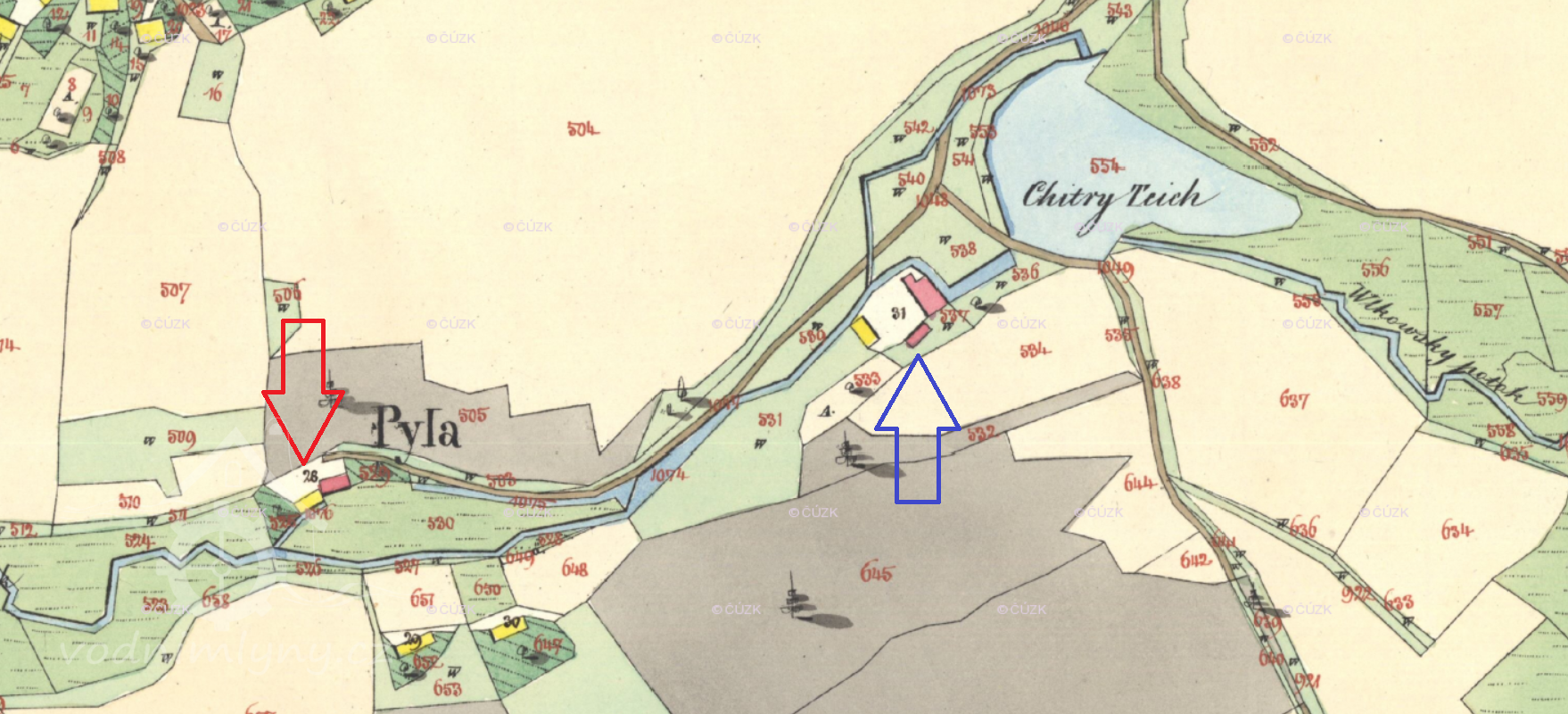 Původně pouze pila, 1930 ale již nebyla v provozu (pouze mlýn).