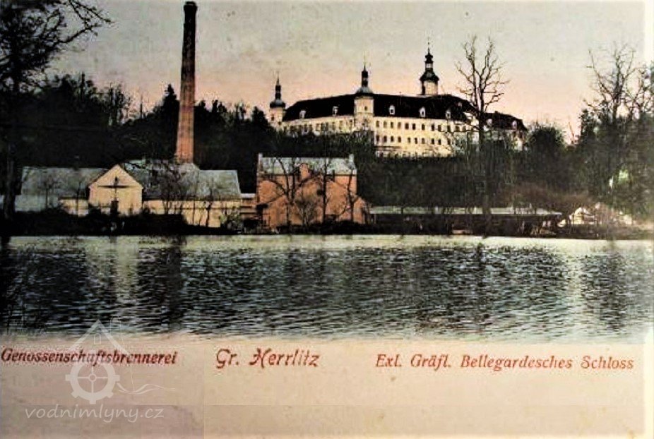 Horní, nebo také Zámecký mlýn ve Velkých Heralticích se připomíná prvně v listině z 1. května 1626, kterou Václav z Oppersdorfu osvobodil Michaela Spandleho, tesaře, jenž koupil od vrchnosti Horní mlýn ve Velkých Heralticích o dvou chodech, s olejnou atd, od roboty, potvrzuje mu zdarma potřebné dřevo na opravu mlýna a robotníky na čištění mlýnské strouhy. Roční činži platí 13 tol., na císařské daně přispívá 20 tol. Už dříve, roku 1608, se zmiňuje mlynář Bartl / Bartoloměj/ Rawer, který se k mustruňku dostavil s ručnicí a mečem.