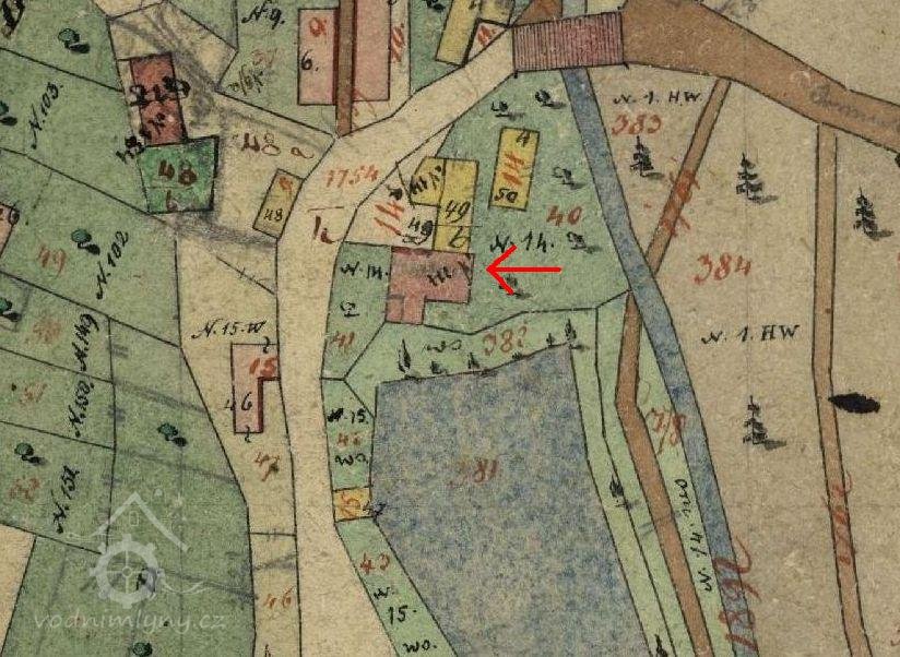 Popis1930: 1 turbína Francis, hltnost 0,23 m3/s, spád 5,4 m, výkon 12,9 HP