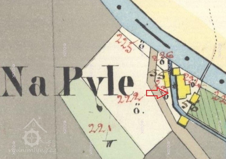 PopisV roce 1930 zde byla Francisova turbína, hltnost 0,1 m3/s, spád 3,3 m, výkon 5 HP.