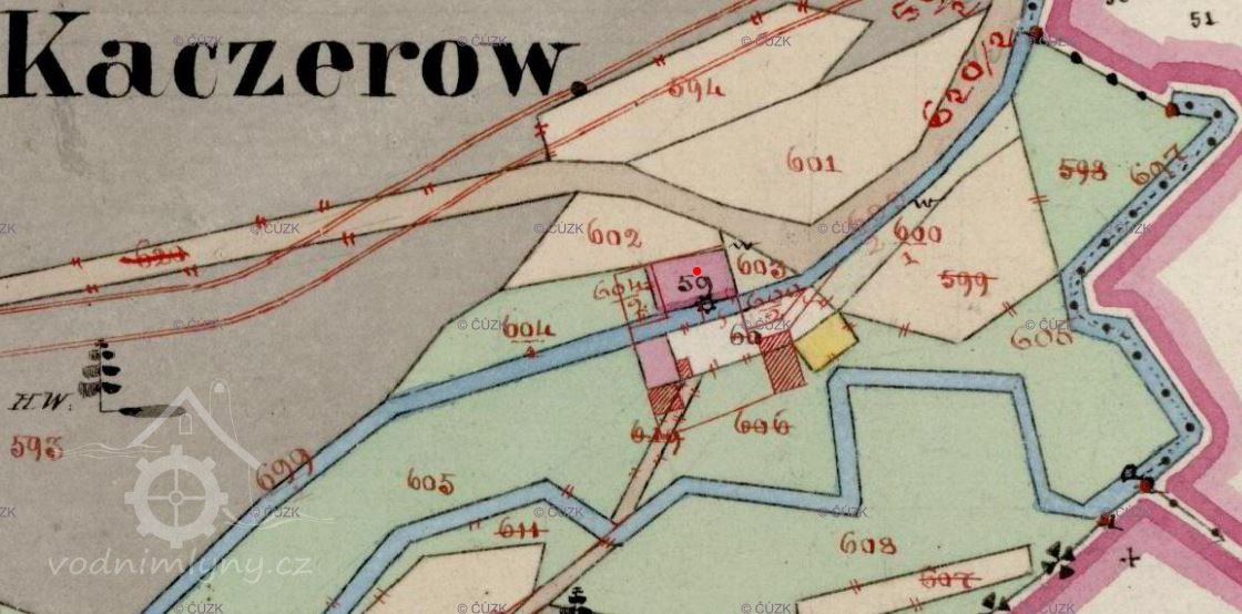 (V dnešních mapách je uváděn název Kačerov, v Pozemkové knize Červená Třemešná je mlýn čp. 50 uveden již v roce 1865. pozn. J.S.)