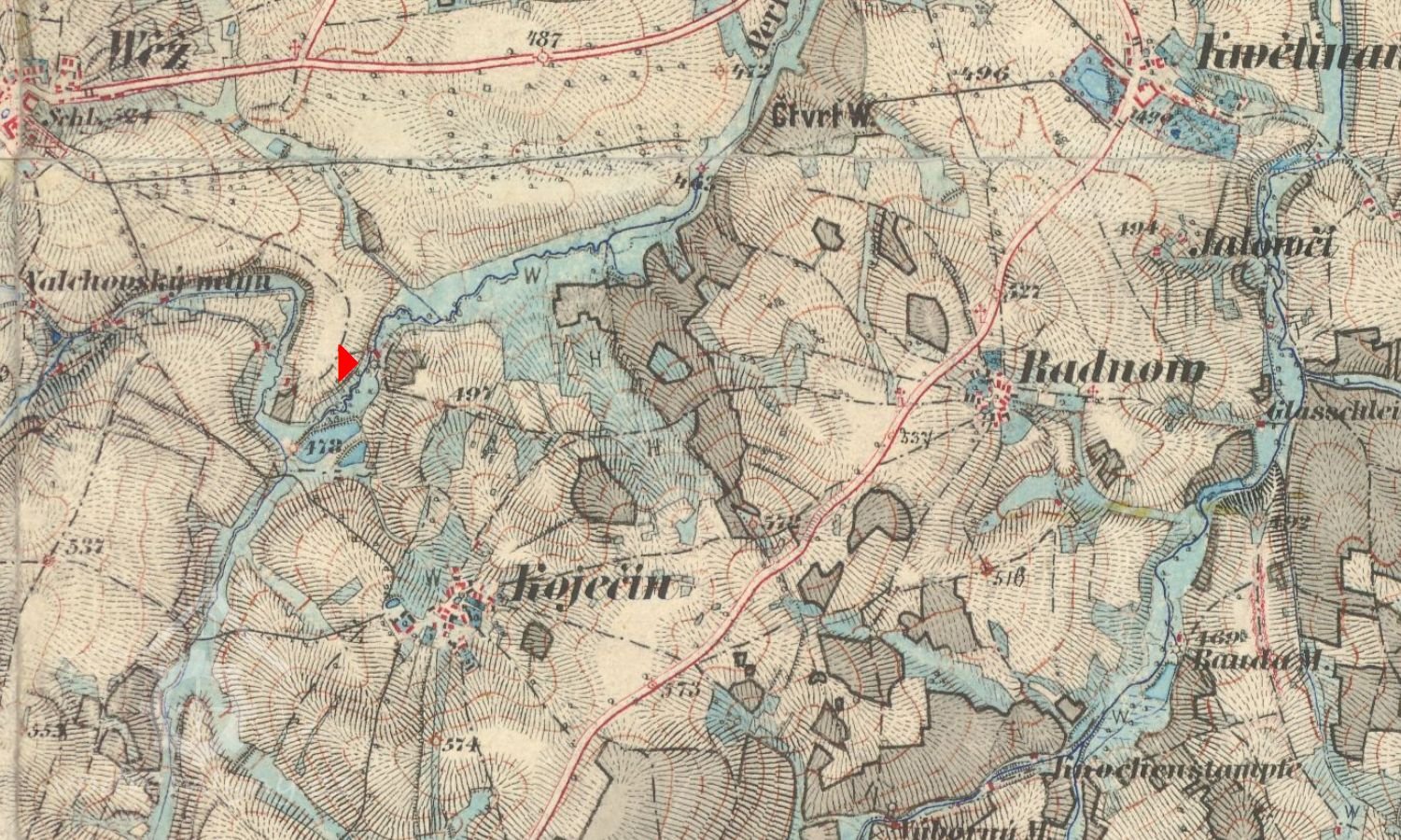 5. Kupující nepřivlastní si nic více mimo specifikovaných polí a luk nesmí z panské půdy dělat další pole, není oprávněn káceti dřevo na stavbu nebo jinou potřebu, nýbrž musí si toto opatřiti proti hotovému zaplacení buď od zdejší vrchnosti nebo odjinud mimo panství. Naproti tomu je povinen kupující a příští vlastník tohoto mlýna odebírati všechno potřebné palivové dřevo a to nejméně 10 sáhů ročně, dále všechny nápoje proti hotovému zaplacení v běžných cenách přímo od zdejšího panství a nesmí si tyto opatřovati odjinud pod trestem zabavení /konfiskace/ pokuty a vězení.