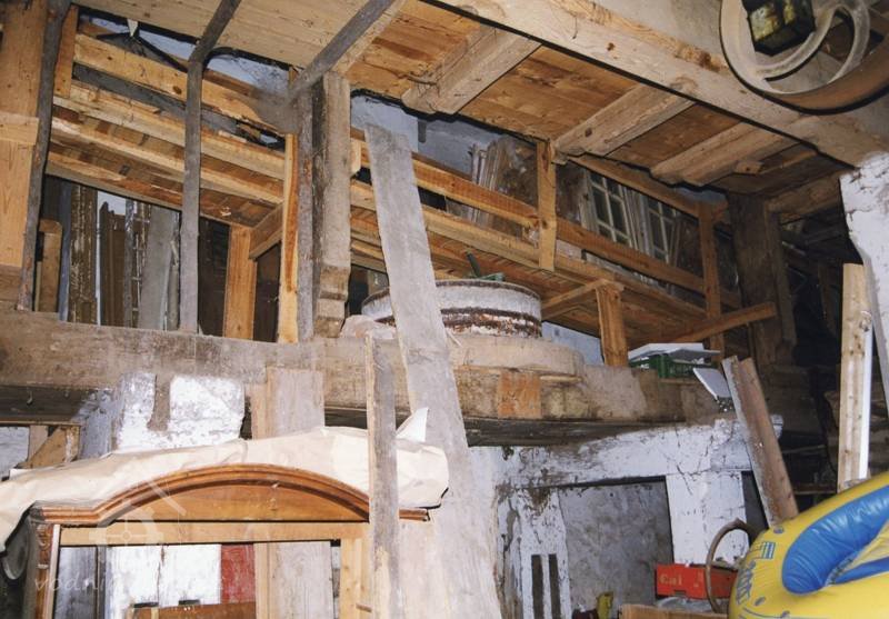 Původní mlýn před 1855: pravděpodobně přízemní stavení s dřevěnou obytnou částí a kamennou mlýnicí, přiléhající k náhonu.
